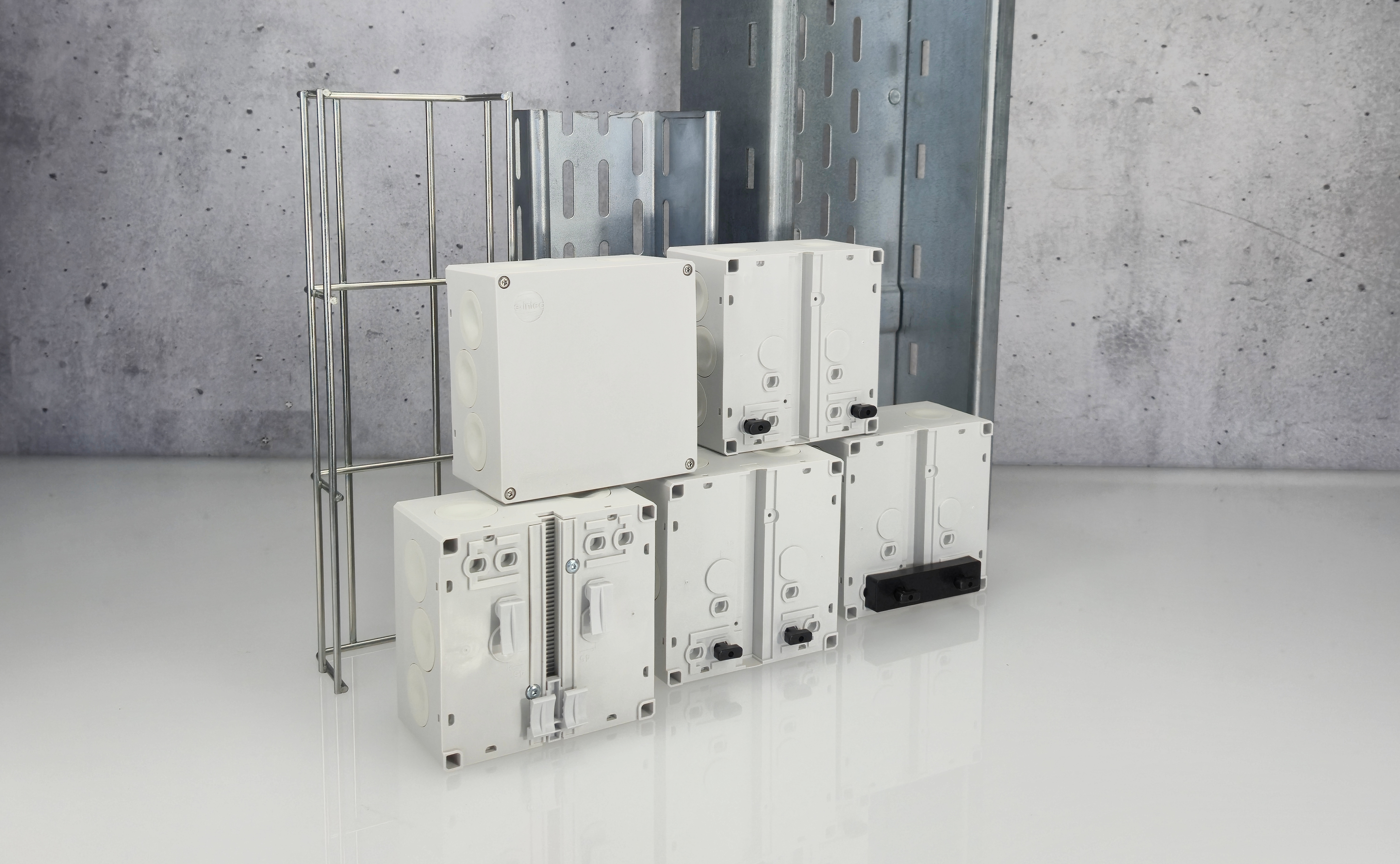 La nouvelle boîte de dérivation AZD-110 d'eintec se distingue par son élégance et sa polyvalence. Grâce aux options de fixation brevetées telles qu'EasyFix ou SmartFix, l'AZD-110 peut être montée en quelques gestes sur un chemin de câbles, un système de câbles à grande portée ou un chemin de câbles en treillis. Grâce aux différentes possibilités d'entrée de câbles, elle est parée pour toutes les situations. Qu'il s'agisse d'une simple entrée en caoutchouc, d'une bague à griffes pour la décharge de traction ou d'un presse-étoupe, tout est possible.